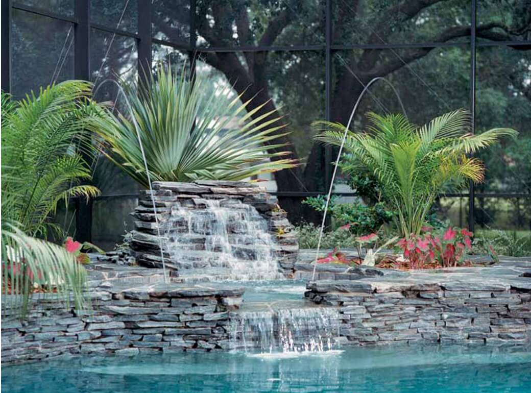 installed as a standalone feature, or niche mounted in a self contained niche with water and electrical and drain connections